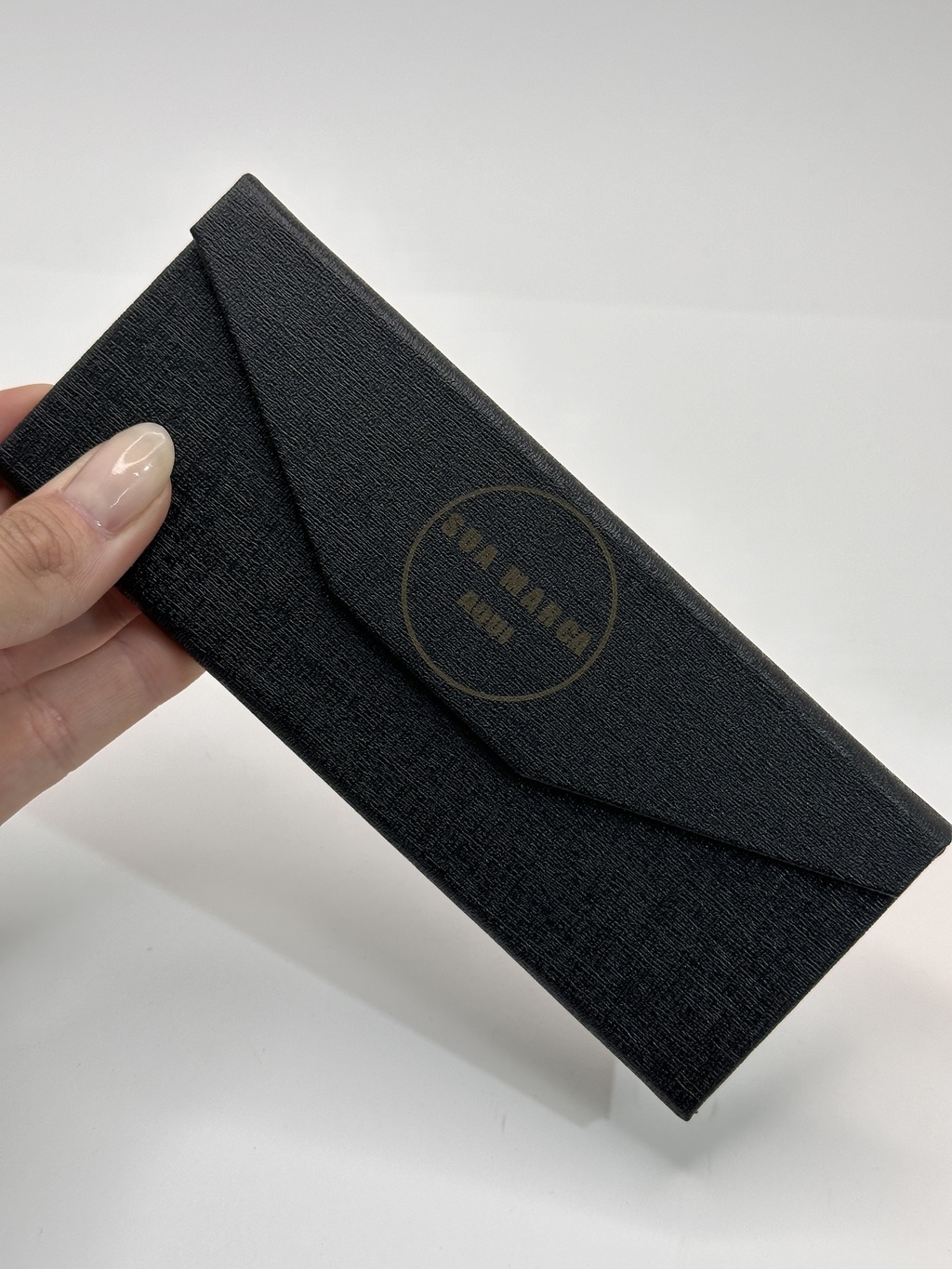 O estojo também se dobra e vira uma linda carteira compacta para guardar na bolsa ou para poder colcocar até seus cartões.